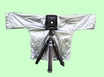 Most recently, I purchased a black focusing cloth from Quiet Works in the US. Although this slows me down, the viewfinder will never give you the same impression of the scene that a glass screen and black cloth can, especially is you are using filters.