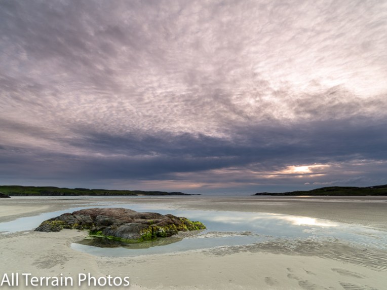 Clouds rolled in at the last minute to obscure the setting sun over the tiny village of Ardroil, on the Isle of Lewis. I had this huge expanse of sand all to myself with the exception of the occasional dog walker. I had decided to camp a few miles away in a place called Kneep, to capture the 4am sunrise the following morning, which turned out to be an error for two reasons. Firstly, the Kneep campsite was pretty awful, especially in comparison to the wild camping at Ardroil. Secondly, the rain started to fall after the sun dropped and the next day was a wash out.