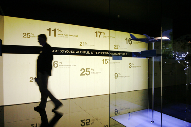 Sometimes I end up doing vary varied tasks for different projects. Whilst based at PCI Fitch, I was the agency photographer and one of the jobs I covered was the Farnborough Airshow in 2006.  The design team had created the Boeing Dreamscape interior at the air show, which I shot for Boeing.  It was a delightful mixture of physical installation and digital elements.